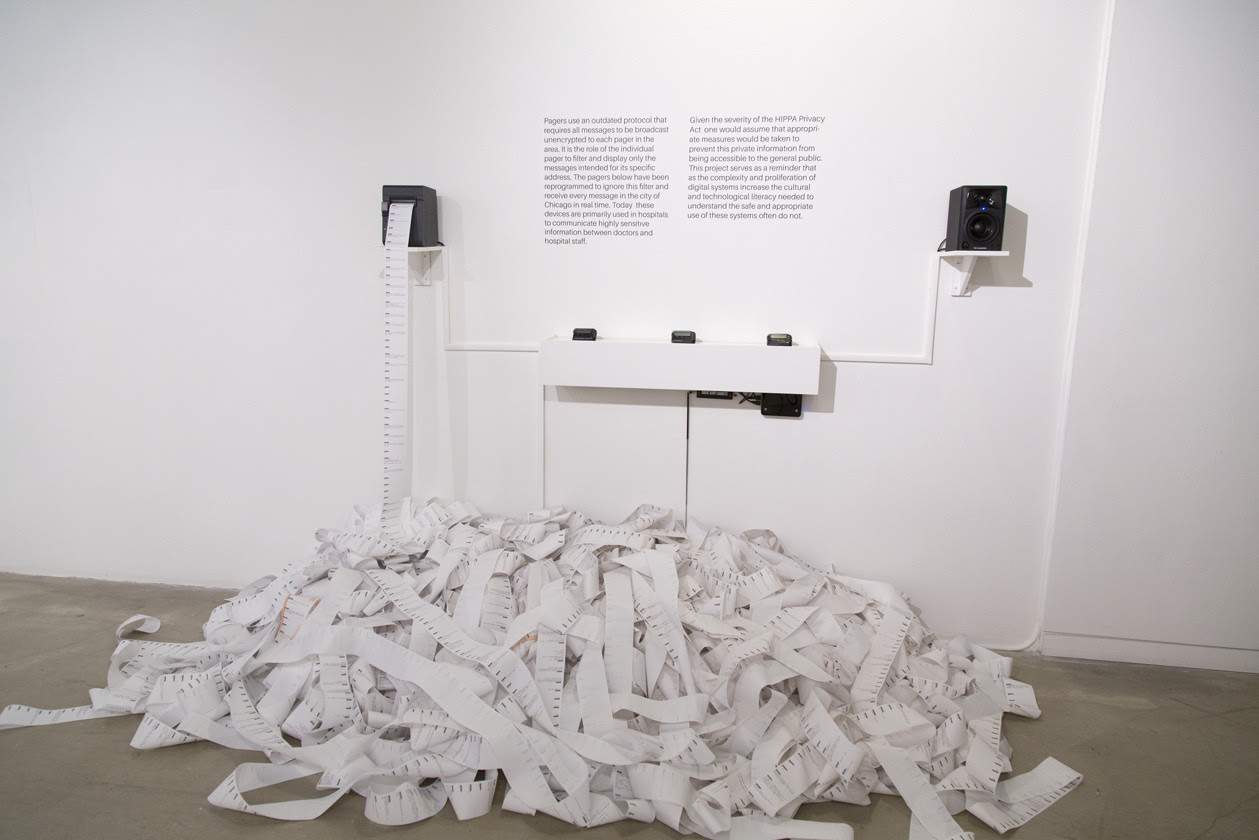 The artist Brannon Dorsey leveraged this insecurity to create "Holypager", an art installation that receives all the messages being sent in Chicago, anonymizes them, then displays them on three pagers in an art gallery -- while also printing them on a huge scroll of receipt paper.